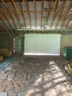 На территории построен гараж на 4 автомобиля, технические помещения, место для персонала.