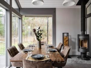 2. Панорамное остекление: Окна по всему периметру позволяют наслаждаться видом на сосновый бор из любой точки дома.