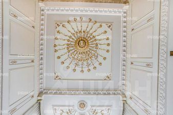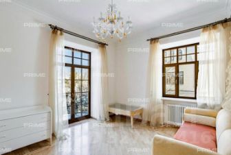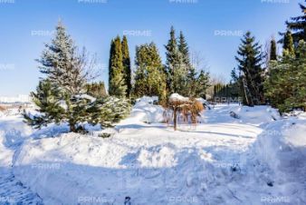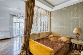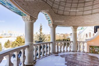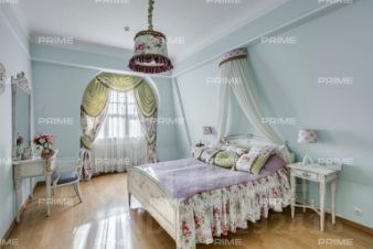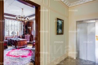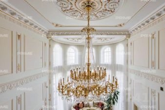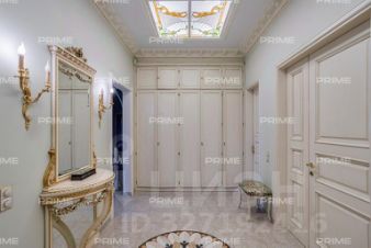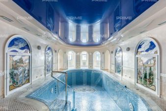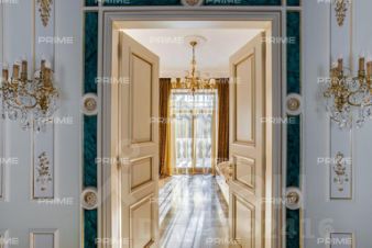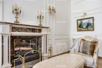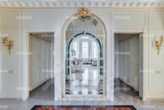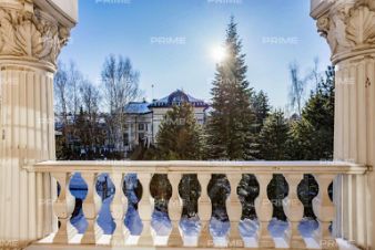 Придомовая территория поражает своей красотой и ухоженностью: среди вывмощенных дорожек возвышаются вечнозеленые ели и сосны, создавая атмосферу приватности в окружении живописного ландшафта. Фасад здания выполнен в классическом стиле с изящной лепниной, колоннами и балюстрадами, что подчеркивает высокий статус объекта.