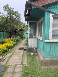 Участок поддерживается в образцовом состоянии, растут декоративные и плодовые деревья (сливы), а также ягодные кусты: малина, смородина. Много цветочных клумб и грядок с овощными культурами. Также находится железный гараж, детская площадка, беседка и хоз.блок. Дорожки на участке выложены плиткой. По бокам расположены участки с жилыми домами.