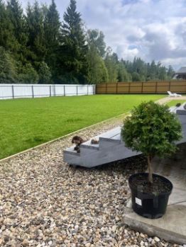 Просторный, сухой и ровный участок с небольшим естественным уклоном в сторону леса идеальное решение для дренажа. Полностью благоустроен: