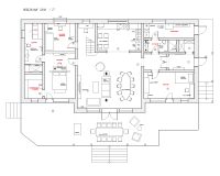 Планировка: На первом этаже - гостиная с кухней и выходом на 100 кв.м. палубу (мангал, зона отдыха). 3 спальни (одна с гардеробной и санузлом с сауной), гостевой санузел с душем. Постирочная-котельная с отдельным входом. На 2 этаже - 2 спальни, ванная.