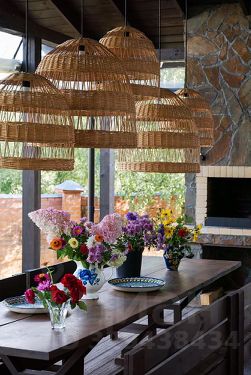 Центральную часть первого этажа занимает гостиная, соединенная с кухней стеклянным проемом и с выходом на палубу, где центральное место занимает трехметровый дубовый стол ручной работы и мангал. Высота потолка гостиной 4,5 м.
