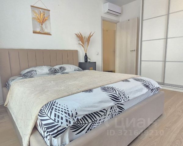 В спальне: двуспальная кровать 160х200, платяной шкаф, кондиционер.
