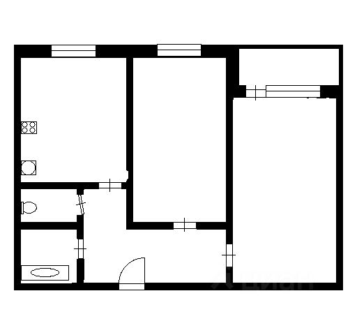 Общая пл. 58 м2, комнаты изолир. 12 и 13 м2, кухня-гостиная 15 м2, большие прихожая/коридор, застекленная лоджия с видом на уютный двор, совмещенный с/у.