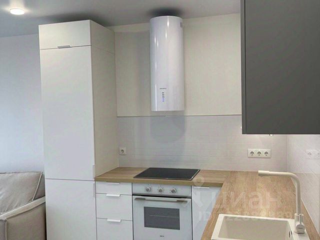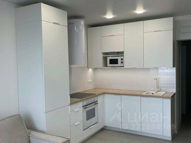 Кухня-гостиная с кухонным гарнитуром и зоной отдыха площадью 16,9 кв м. Техника: варочная панель на 3 конфорки, духовой шкаф, вытяжка, посудомоечная машина, чайник, микроволновая печь, холодильник. Есть набор посуды. Обеденный стол раскладной, к нему 6 табуреток. В зоне гостиной находятся 1,5-спальный раскладной диван и 55" телевизор с тумбой. Есть комплект спальных принадлежностей для дивана.