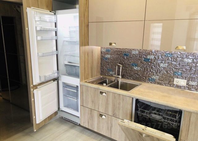 - вся техника встроенная: индукционная 4-х конфорочная варочная панель, духовой шкаф, вытяжка, холодильник, посудомоечная машина, микроволновая печь, винный шкаф, электрочайник, стиральная машина),