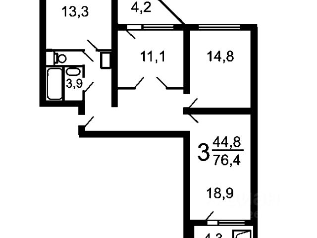 - 3 изолированные комнаты (21 м², 16 м², 14 м²).