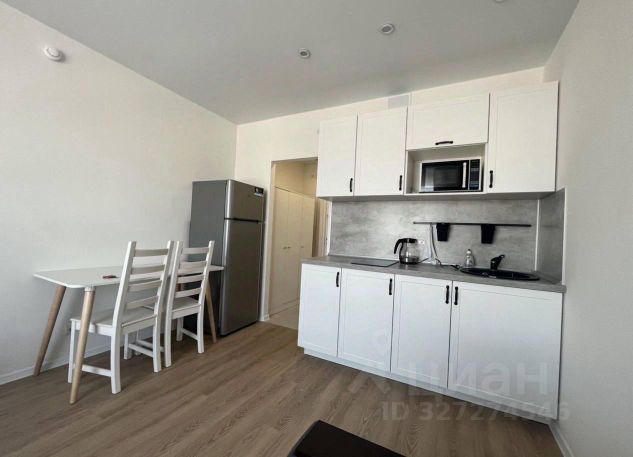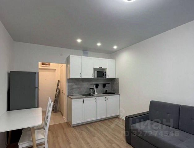 В квартире выполнен косметический ремонт, поэтому всё выглядит свежо и современно. Студия полностью меблирована, есть всё необходимое для комфортного проживания: в комнате и на кухне установлена мебель:
