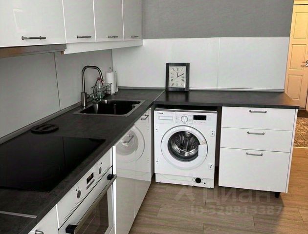- кухонный гарнитур, из техники: плита (варочная панель), духовой шкаф, вытяжка, микроволновая печь, электрочайник, тостер, холодильник, стиральная машина),