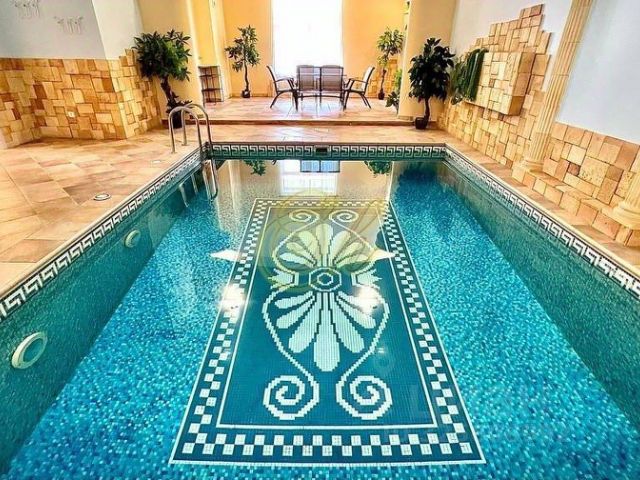 В дальнем конце дома находится зона с бассейном и большой душевой.