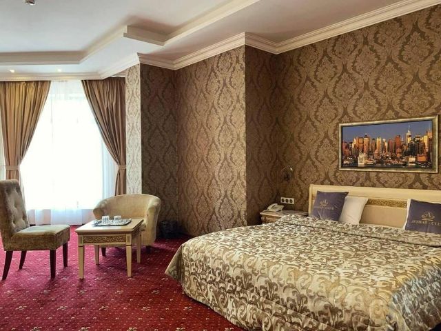 Гости могут разместиться в номерах разных категорий: Стандарт, Комфорт, Делюкс, Люкс, Люкс Свадебный, Люкс Бизнес. Все они оснащены шкафом, телевизором, кондиционером, сейфом, Wi-Fi, холодильником, чайником и собственной ванной комнатой. Гостям предоставляются полотенца, тапочки, халаты и косметические принадлежности.