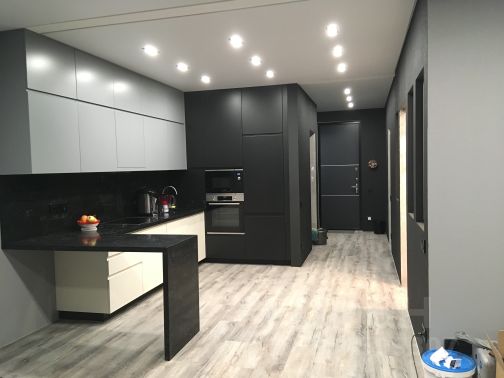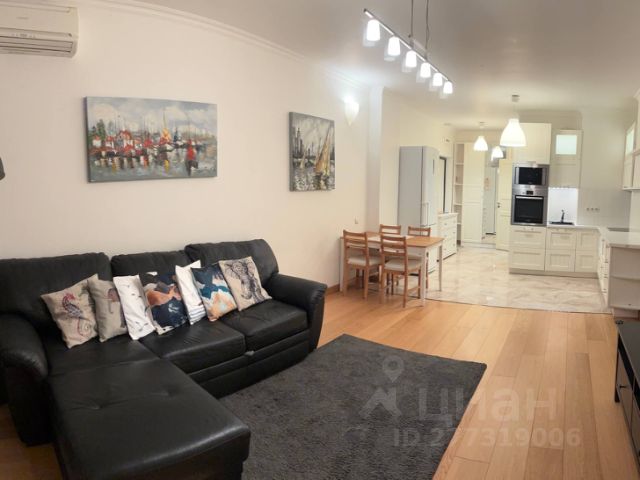 Кухня-гостинная: Посудомойка, микроволновка, большой холодильник, варочная панель, духовой шкаф, вытяжка, тихая стиральная машина на 5кг, телевизор, большой раскладной диван, стол со стульями, кондиционер. На полу плитка с теплым полом. встроенный фильтр для питьевой воды и вся необходимая посуда.