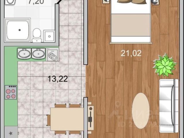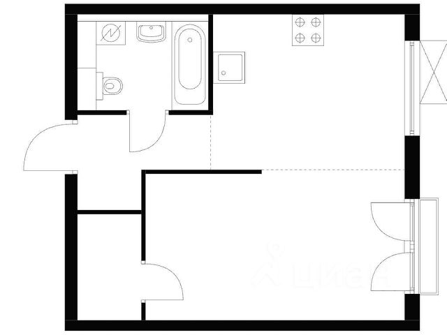 - две комнаты 15,3 м2 и 14,2 м2, санузел;