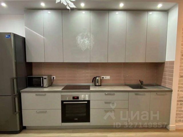 - Вся бытовая техника также в наличии: варочная панель, духовой шкаф, микроволновая печь, посудомоечная машина, холодильник, электрочайник, кофеварка, телевизор.