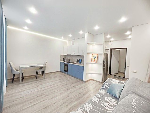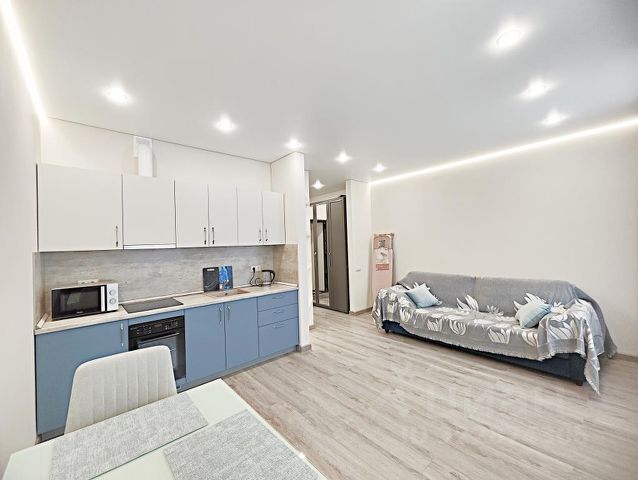Сдаётся светлая студия с евроремонтом и совмещённым санузлом в ЖК Аникеевский. Без депозита! Её можно посмотреть когда Вам удобно: бронируете время, забираете ключи или встречаетесь с нашим представителем и спокойно осматриваете. Если всё понравится, договор подпишем онлайн и будем поддерживать Вас на всех этапах аренды. В квартире есть: - Кухонный гарнитур; - Холодильник; - Утюг; - Плита. Дополнительную мебель/технику можно приобрести в счёт арендной платы. Полы — ламинат и плитка. Окна выходят на улицу, на юго-запад, возле дома есть бесплатная парковка. Собственник готов заселить не более 3 взрослых жильцов с детьми, оформить временную регистрацию и заключить договор с юридическим лицом. Можно с питомцем. Дом малоэтажный, но с двумя лифтами, расположен в экологически чистом районе, со всех сторон лесной массив (пихтовые деревья). Во дворе есть детская и спортивная площадки. В пешей доступности - продуктовые супермаркеты, кафе и закусочные, пункт выдачи Яндекс Маркет. До МЦД-2 Аникеевка - 43 минуты на общественном транспорте. В перспективе на Новорижском шоссе откроются станции метро Рублево-Архангельской ветки.