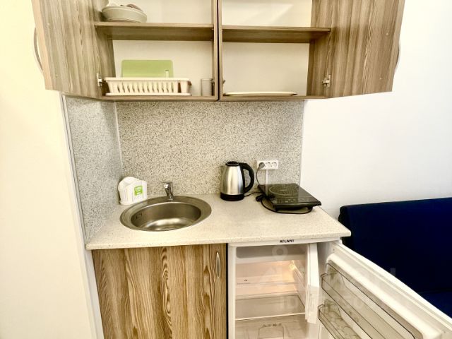 Сдается квартира на длительный срок. Есть всё необходимое. Кухонный гарнитур, варочная панель, вытяжка, холодильник, посудомоечная машина, много шкафов для посуды и разных кухонных принадлежностей, удобный барный стол и стулья. Большая двуспальная кровать, прикроватная тумба, пуф, кресло. Установлен кондиционер! Полностью оборудованный санузел с душевой кабиной, стиральная машина. В прихожей - зеркальный шкаф.