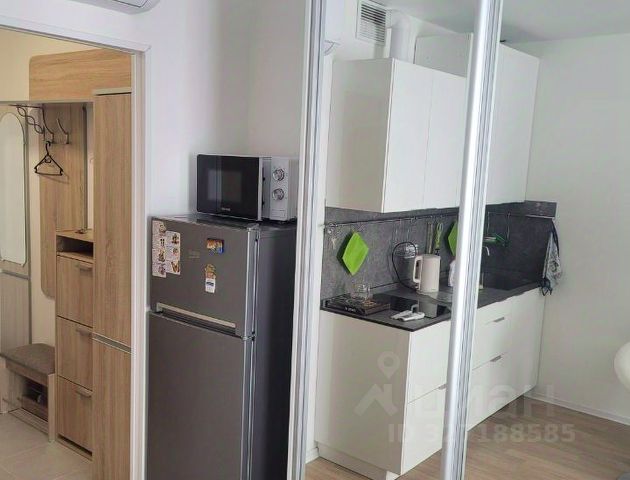 Студия просторная - общая площадь 33 м2, кухня-гостиная 25 м2, вид из окна на рощу, просторный совмещенный санузел, большая прихожая с вместительным зеркальным шкафом.