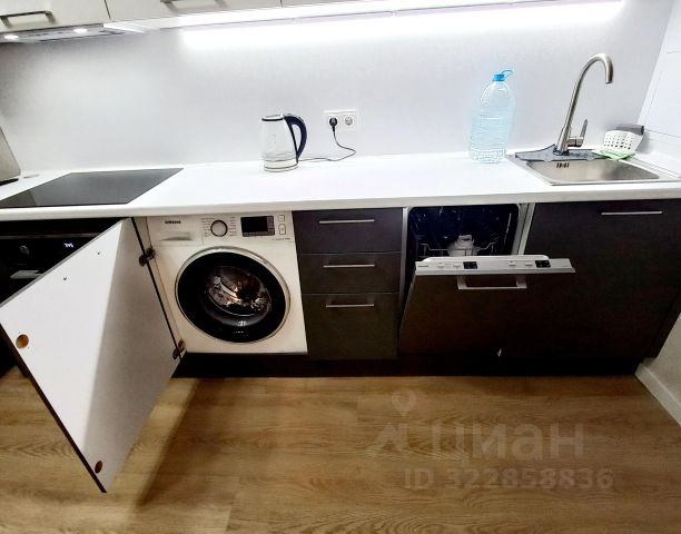 - кухонный гарнитур, из техники: варочная панель, вытяжка, духовой шкаф, холодильник, посудомоечная машина, электро-чайник, стиральная машина,