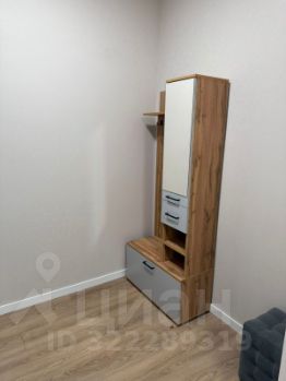 В прихожей - вешалка, шкаф с закрытыми и открытыми полками, пуф, обувница.