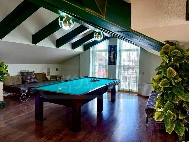 1 этаж: Просторный зал с бильярдом, настольным теннисом, пианино и камином.