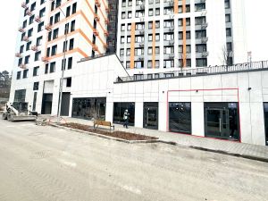 Просторное светлое помещение прямоугольной формы с отдельным входом и витринным окном в жилом комплексе бизнес класса "8 Кленов" в подмосковном микрорайоне Опалиха.