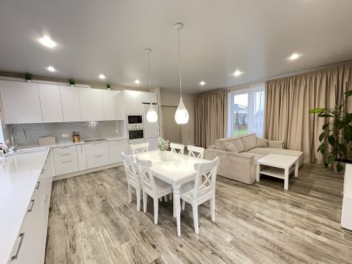 Сдается современный меблированный дом в одном из лучших коттеджных поселков северо-запада Москвы. КП АРТЕК - живописное тихое место в 20 км от МКАД по Волоколамскому шоссе. Находится в экологически чистом районе Подмосковья. Тут можно наслаждаться всеми прелестями загородной жизни, имея при этом возможность быстро и легко добраться до центра Москвы. На территории частный детский сад, рядом государственный. Школьный автобус возит детей в школы Нахабино. У въезда в посёлок все необходимые магазины Магнит, ВкусВилл, аптека, Озон, WB. Ежедневный вывоз мусора, чистка улиц, круглосуточная охрана въезд через шлагбаум по пропускам. Коммуникации все центральные, водоснабжение осуществляется за счёт собственных артезианских скважин, канализация разведена по всему посёлку, дороги асфальтированы, территория благоустроена, имеется уличное освещение и большая детская площадка. В 7 км находится станция МЦД-2 Нахабино. От остановки рядом с поселком каждые 15 минут до нее ходят маршрутные такси. От МЦД Нахабино до станции метро Тушинская ехать 25 минут. Участок частично огорожен, выровнен, есть парковочная площадка, по периметру сад с молодыми деревьями. Электричество 15 кВт, газовый котел обеспечивает отопление, горячую воду и теплый пол. Дом построен в 2022г. Фундамент- железобетонная плита, стены из экологически чистых керамических блоков. Большие дубовые панорамные окна. В доме высокие потолки, точечное освещение и паркет из натурального ясеня. На первом этаже находится большая гостиная с выходом на солнечную веранду. Кухня современная, просторная, со встроенной техникой и каменной столешницей. Так же на первом этаже располагаются широкая прихожая, кладовая, котельная и санузел. На втором этаже три большие комнаты (19, 23 и 27 квм), большая общая ванная (10квм) и отдельный санузел для главной спальни. Дом сдается на срок от 6 месяцев Будем рады ответить на все вопросы и организовать показ в удобное для вас время. Сдаю загородную недвижимость в деревне Нефедьево Московской области на длительный срок.