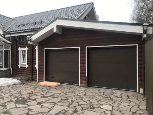 На участке предусмотрены хозблок с гаражом на 2 машины, комната для охраны, спортзал, навес для трёх автомобилей и садовой техники, вольер для трёх собак. У въезда и гаража выполнено мощение брусчаткой. В вашем распоряжении снегоуборщик Ariens (США), газонокосилка Caiman и аэратор MTD.